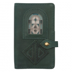 リアルガラスと本革を融合させたシステム手帳です。使用するガラスはヴィンテージのステンドグラスに近い色彩を表現。ガラスの印面は透過度と着色のバランスを調整することでムラを生み出し配色パターンは革との相性を考え、敢えてシックにしています。革や芯材などは類似の商品と比較し倍近い種類とパーツ数。組み立てにおいては、微細な誤差で表情が大きく変わってしまうため、限られた熟練の職人のみが生み出すことのできる希少価値の高い作品です。日本製の牛革「モストロレザー』を使用。モストロとはイタリア語でモンスター。使い始めはマットな表情ですが経年により激しくエイジングします。ヌメ革ならではの経年変化を存分にお楽しみください。
