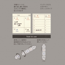 4種のデザインが一つになっていて、ノートや手帳に繰り返し書く項目を、スタンプで簡単に記入できます。