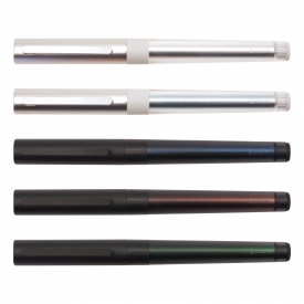 幻惑的な見た目を作り出しているのは、中心部にある軸と表面にすりガラスのようなマット加工を施した高透明素材「DURABIO(バイオエンジニアリングプラスチック)」。透明の奥に軸が見えることもあれば、反射した光の加減によって表面と一体化し1本の太い金属に見えることもあり、一瞬で表情が変わる愉しさが魅力です。キャップの先端は微かに波打っており、全体のバランスを崩さない絶妙な遊び心で、より高度な調和を表現しています。