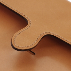 ベルトの先端が内側に隠れるシンプルな見た目が特徴の「カクシシリーズ」のミニ6のリング20mmタイプ。表側には純粋なアニリン水性染料仕上げを施すレーデルオガワ製のコードバン、内側にはイタリア・ヴィルジリオ社製のスクラッチ加工が特徴の植物タンニン鞣し革・マルゴーを使用。染料染めの色味の深さと独特な光沢があり少しづつ色艶を増す経年変色が楽しめます。リングは安定のクラウゼ製。