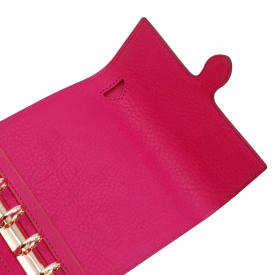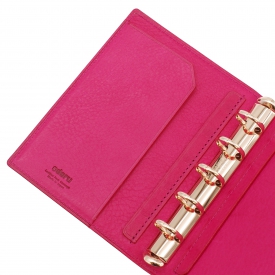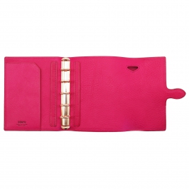 ベルトの先端が内側に隠れるシンプルな見た目が特徴の「カクシシリーズ」のM5サイズシステム手帳です。表側にはアニリン水性染料仕上げを施すレーデルオガワ製のコードバンを使用。内側にはイタリア・ヴィルジリオ社製のスクラッチ加工が特徴の植物タンニン鞣し革・マルゴーを使用しています。染料染めの色味の深さと独特な光沢があり少しづつ色艶を増す経年変色が楽しめます。リングはクラウゼ社製。