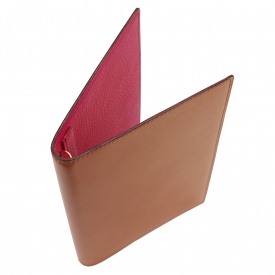 ノートタイプのシンプルなバイブルサイズシステム手帳です。表側には純粋なアニリン水性染料仕上げを施すレーデルオガワ製のコードバンを使用し、内側にはイタリア・ヴィルジリオ社製のスクラッチ加工が特徴の植物タンニン鞣し革・マルゴーを使用しています。染料染めの色味の深さと独特な光沢があり少しづつ色艶を増す経年変色が楽しめます。リングは安定のクラウゼ製。