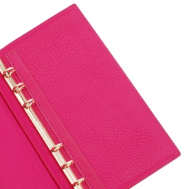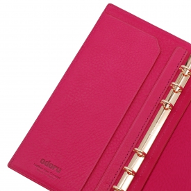 ノートタイプのナローサイズシステム手帳です。表側には純粋なアニリン水性染料仕上げを施すレーデルオガワ製のコードバンを使用し、内側にはイタリア・ヴィルジリオ社製のスクラッチ加工が特徴の植物タンニン鞣し革・マルゴーを使用しています。染料染めの色味の深さと独特な光沢があり少しづつ色艶を増す経年変色が楽しめます。リングは安定のクラウゼ製。