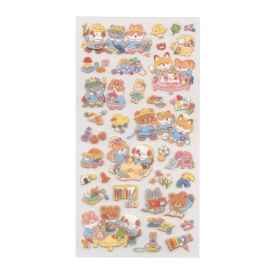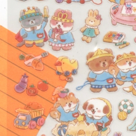 仲良しの動物6匹組が織りなす、日常の小さなドラマを切り取ったシールです。ぽてぽてしたフォルムと子供らしいユーモラスな表情は手帳やカードに貼るだけで癒しを添えてくれます。