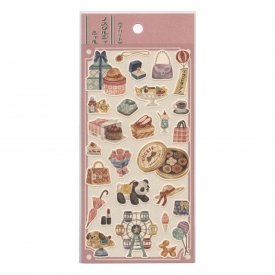 レトロテーマのシールです。懐かしいモチーフや色合いが特徴で、普段のデコにも合わせやすいタッチに仕上がっています。