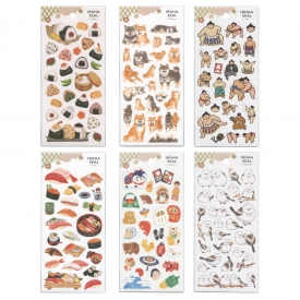 和を感じるモチーフを集めたイラストシールです。和紙素材を使用しており、独特の風合いを楽しめます。