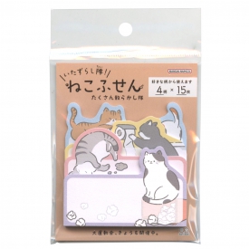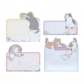 かわいくって許せちゃう!いたずらねこのふせん。飼いねこあるある!?いろんなねこのいたずらを集めたダイカットふせんです。4柄各15枚計60枚入りで好きな柄から使えて便利。メッセージやインデックスにおすすめです。