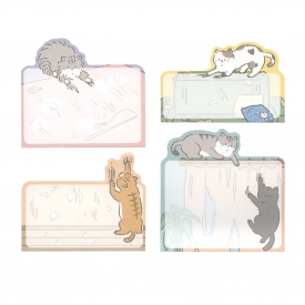 かわいくって許せちゃう!いたずらねこのふせん。飼いねこあるある!?いろんなねこのいたずらを集めたダイカットふせんです。4柄各15枚計60枚入りで好きな柄から使えて便利。メッセージやインデックスにおすすめです。