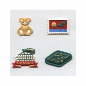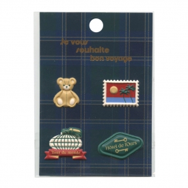 思わずカメラのシャッターを切りたくなるような、旅で出合うさまざまな体験をモチーフにしたシールです。お気に入りのぬいぐるみを添えて、非日常のワンシーンを自分らしく楽しむ。そんな旅の瞬間をイメージしたデザイン。サイズは大きいシールは1ピース30×30mm程度のサイズ、小さいシールは1ピース20×20mm程度で2mm程の厚みがありす。1パッケージに4種のデザインが1ピースずつ入っています。