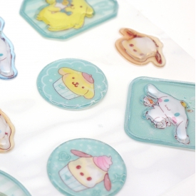 まるでシーリングスタンプのような凹凸豊かな立体感と、半透明ですりガラスのような素材感が楽しいシールです。貼るだけで高見え、ぷっくり質感がポイントです。サンリオキャラクターズの世界観が詰まったシールです。