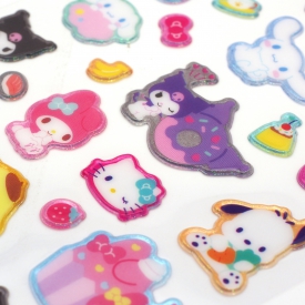 ぷっくりラメで可愛さ倍増!人気の樹脂もりシールです。 透明感とキラキラのある、ぷっくりとした素材感。サンリオキャラクターズの世界観が詰まった特別なシールです。