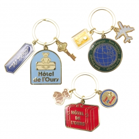 思わずカメラのシャッターを切りたくなるような、旅で出合うさまざまな体験をモチーフにしたキーホルダーです。お気に入りのぬいぐるみを添えて、非日常のワンシーンを自分らしく楽しむ。そんな旅の瞬間をイメージしたデザイン。金属製で大ぶりなサイズ感が華やかなキーホルダーは、鍵やポーチ、バッグにつけて、持ち物のアクセントにもなります。
