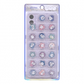丸、星、ハートのコロンとした立体おはじきシールです。全部違う柄が各5柄ずつ。キラキラホログラムでかわいい。スマホケースみたいなブリスターパッケージに一個一個仕切られて入っています。取り出すときはブリスターをスライドして使いたいパーツを選べます。