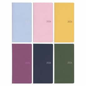 シンプルながら個性的な色をたのしめる「カラーズ」のシリーズです。布地の表紙には目の細かい書籍装幀用の生地が使われていて、さらりとした触り心地が特徴です。硬めで軽くしなる程度のハードカバー仕様です。