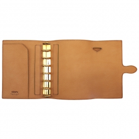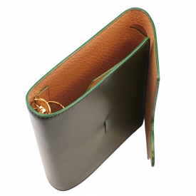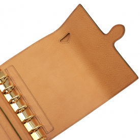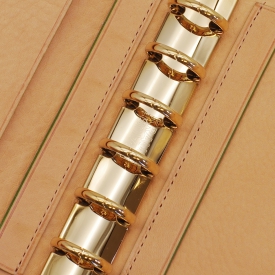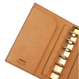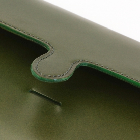 ベルトの先端が内側に隠れるシンプルな見た目が特徴の「カクシシリーズ」のミニ6のリング20mmタイプ。表側には純粋なアニリン水性染料仕上げを施すレーデルオガワ製のコードバン、内側にはイタリア・ヴィルジリオ社製のスクラッチ加工が特徴の植物タンニン鞣し革・マルゴーを使用。染料染めの色味の深さと独特な光沢があり少しづつ色艶を増す経年変色が楽しめます。リングは安定のクラウゼ製。