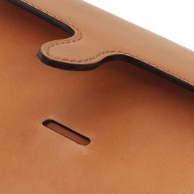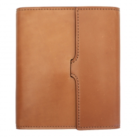ベルトの先端が内側に隠れるシンプルな見た目が特徴の「カクシシリーズ」。左側に風琴マチポケット付きのM5サイズシステム手帳です。表側にはアニリン水性染料仕上げを施すレーデルオガワ製のコードバンを使用。内側にはイタリア・ヴィルジリオ社製のスクラッチ加工が特徴の植物タンニン鞣し革・マルゴーを使用しています。染料染めの色味の深さと独特な光沢があり少しづつ色艶を増す経年変色が楽しめます。リングはクラウゼ社製。