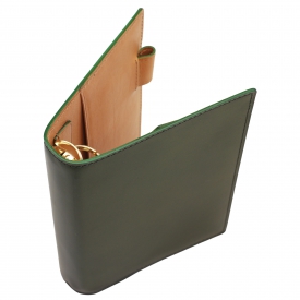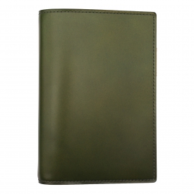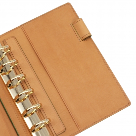 可動式ペンホルダーが付属したノートタイプのシステム手帳です。表側には純粋なアニリン水性染料仕上げを施すレーデルオガワ製のコードバンを使用し、内側にはイタリア・ヴィルジリオ社製のスクラッチ加工が特徴の植物タンニン鞣し革・マルゴーを使用しています。染料染めの色味の深さと独特な光沢があり少しづつ色艶を増す経年変色が楽しめます。リングは安定のクラウゼ製。