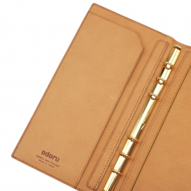 ベルトの先端が内側に隠れるシンプルな見た目が特徴の「カクシシリーズ」のナローサイズシステム手帳です。表側には純粋なアニリン水性染料仕上げを施すレーデルオガワ製のコードバンを贅沢に一枚革で使用。内側にはイタリア・ヴィルジリオ社製のスクラッチ加工が特徴の植物タンニン鞣し革マルゴーを使用しています。染料染めの色味の深さと独特な光沢があり少しづつ色艶を増す経年変色が楽しめます。リングは安定のクラウゼ製です。