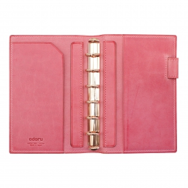 > LOAPAD 朝霧コードバン ミニ6 16mm コンパクトノート 可動式ペンホルダー【NT×ピンク】