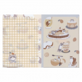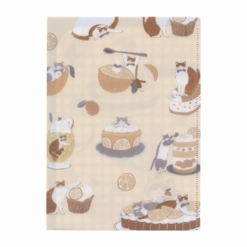 イラストレーター・トビマツショウイチロウ氏による、たくさんのネコと甘いスイーツが描かれた特別なシリーズのクリアファイルです。2つのポケット付きで資料やチケットを分けて保管可能。A5サイズなので小さなカバンにも収まりやすく日常使いに便利なアイテムです。