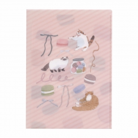 イラストレーター・トビマツショウイチロウ氏による、たくさんのネコと甘いスイーツが描かれた特別なシリーズのクリアファイルです。2つのポケット付きで資料やチケットを分けて保管可能。A5サイズなので小さなカバンにも収まりやすく日常使いに便利なアイテムです。