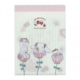 トコロコムギさんとサンリオがコラボしました。サンリオのキャラクターになりきっているコムギアニマルたちが、甘いスイーツの世界で楽しんでいるデザインのA5サイズのクリアファイルです。内側にまでかわいらしいイラストがたくさん描かれています。