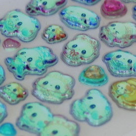 丸みのあるドロップみたいな5mmの立体シールが蓄光タイプになりました。ストーン付きの豪華パーツも楽しめます。