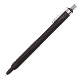 手にフィットする曲線的なボディと滑りにくいグリップが特徴のシャープペンシル。本体軸が人差し指の根元に当たる部分が僅かに反り削られているため、手にフィットして持ちやすく、洗練された印象を与えます。