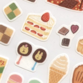 イラストレーターTomatomayu氏のほっこりかわいいマスキングシールです。ほっこりかわいい食べ物やお洋服を中心にしたイラストです。