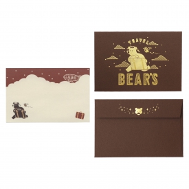 グラフィックデザイナー兼イラストレーターとして活躍するオビワンと、箔押しブランドROKKAKUのコラボ商品です。レトロなデザインと、彩り豊かな箔押しがキラリ。トランクを持って世界や宇宙を旅する熊を描いた「TOURSシリーズ」です。落ち着いた下地にゴールドやシルバーの箔が映えます。ちょっとしたメッセージに最適です。