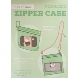 クリアで中が見えるジッパーケースです。カラビナがついているので、よく使うものを入れてすぐ出せるようにカバンにつけることもできます。ホールが2つついているので、ストラップをつけて持ち運びも可能です。