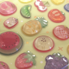 "きゅるるん"としたツヤ感のある立体シールです。ちょっと大きめのサイズで可愛さの存在感がピカイチ!