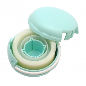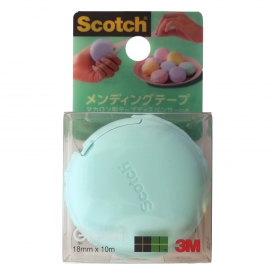 マカロン型のディスペンサーに入ったメンディングテープです。手のひらにコロンと収まるサイズ。カッター部分が収納できるので、安全に持ち運びができます。メンディングテープは貼ると目立ちにくいつや消し加工のため、補修や貼り付けにおすすめ。長期保存に適した素材です。