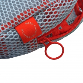 ほどよいマチのあるスクエア型で、コスメやハンドクリーム、イヤホンなど身の回りの細かなアイテムをまとめて収納できます。内ポケット付きなので、小さな小物もすっきり整理可能。中身がほんのり透けるメッシュ素材は見せる収納としても楽しめます。リング状の引手にはキーホルダーやマスコットを付けてアレンジも可能。機能性とデザイン性を兼ね備えたポーチです。