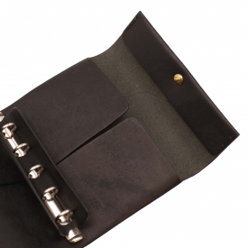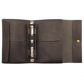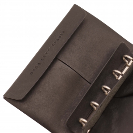 植物タンニン鞣しの牛革であるイタリアンレザー1枚で仕上げた、一枚の革を極力縫わずに折ることで整形したミニ5サイズのシステム手帳です。