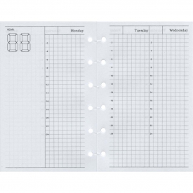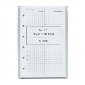 1ページに2日分を配置した、コンパクトに使えるタイムグリッドリフィルです。時間軸と方眼をベースにしているので、タスク管理、スケジュール管理、ログ記録など、用途を決めずに自由に使えます。