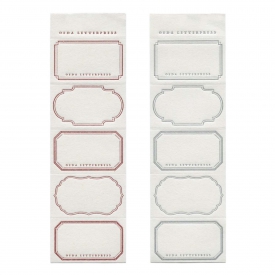 5パターンのフレームが並ぶデザインの、活版印刷が施されたラベルブックです。25枚ずつで別のカラーをセットしてあります。