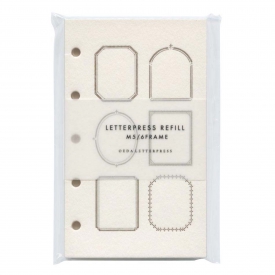 大枝活版室の代表的なモチーフ、フレームデザインのミニ5サイズのシステム手帳用リフィルです。活版印刷が映えるように、一般的な手帳用紙よりも少し厚めの紙です。