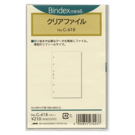 ミニ6穴サイズリフィル G618 クリアファイル(5枚入) バインデックス