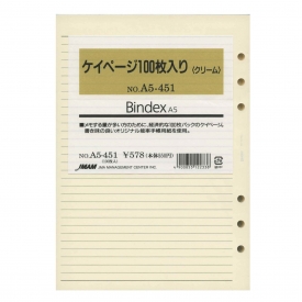 > A5サイズリフィル A5451 ケイページ(クリーム)100枚 6mm横罫 バインデックス