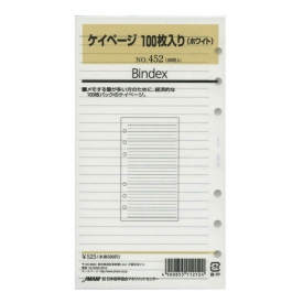 > バイブルサイズリフィル452 ケイページ(ホワイト)100枚入 5mm横罫 バインデックス