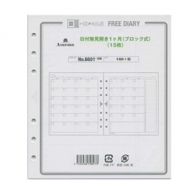> HB×WA5サイズ 日付無 見開き1ヶ月(ブロック式・15枚)システム手帳リフィル