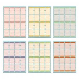 見出しの仕分けに便利な「黄色」「紫」「青」「オレンジ」「赤」「緑」の6色入ったインデックスシールです。