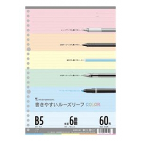 > B5 書きやすい「ルーズリーフ」【カラーアソート】6mm罫